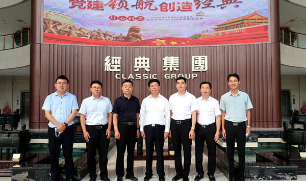 9月17日,山東省工業和信息化廳黨組成員、副廳長靖士寬一行,到經典集團開展省產業轉型升級、數字產業化發展專題調研活動,濟寧市工信局局長劉剛,兗州區工信局局長楊海成,經典集團董事長苗樹文,總經理杜福生等陪同調研。