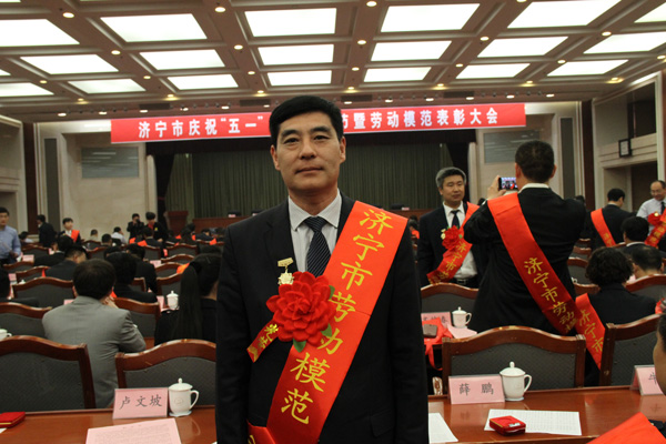 4月29日,濟寧市隆重召開慶祝“五一”國際勞動節大會暨勞動模范表彰大會,山東經典重工集團股份有限公司董事長苗樹文榮獲濟寧市第十屆勞動模范。