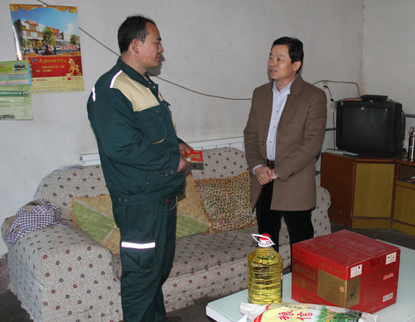每到一戶(hù),集團(tuán)領(lǐng)導(dǎo)與職工家屬親切握手,面對(duì)面促膝交談,了解職工的家庭收入、子女入學(xué)、生活實(shí)際困難情況。送去大米、面粉、食用油等生活物資及600元公司慰問(wèn)金,集團(tuán)領(lǐng)導(dǎo)鼓勵(lì)職工振奮精神,充滿(mǎn)信心,相信集體,克服眼前困難。