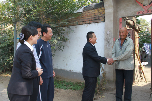 集團公司董事長苗樹文到興隆莊鎮(zhèn)敬老院,與老人親切交談