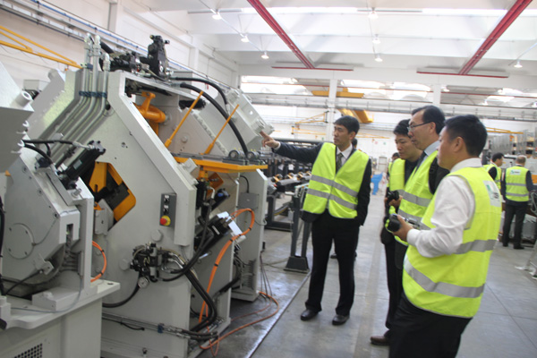 在結束對西歐鋼構廠的考察后,考察團隨后又參觀考察了菲賽普公司總廠,聽取了公司主管人員的介紹,并進行了現場交流。在該公司主管人員的陪同下,考察團深入生產車間和試驗基地仔細觀看了設備產品的加工、組裝和檢驗的全過程,并觀看了各類設備的現場演示??疾靾F對菲賽普公司在鋼構加工設備研發、制造和服務等方面全方位的數字化,留下了非常深刻和良好的影響。