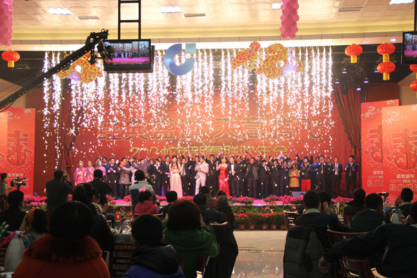為了迎接2013年新春佳節(jié),給公司全體員工及家人們營(yíng)造歡樂(lè)愉快的節(jié)日氣氛,2月6日,由經(jīng)典集團(tuán)公司主辦的主題為2013“經(jīng)典盛世 天意騰飛”新春年會(huì),于集團(tuán)公司宴會(huì)廳熱烈舉行。公司各級(jí)領(lǐng)導(dǎo)、全體員工及員工家屬近千人共同參加了本次年會(huì)。