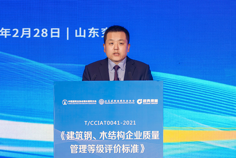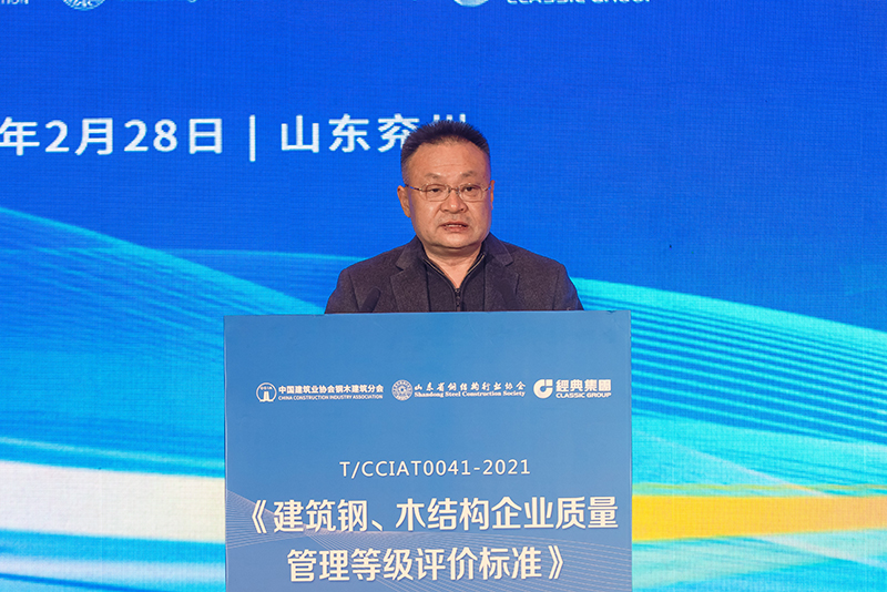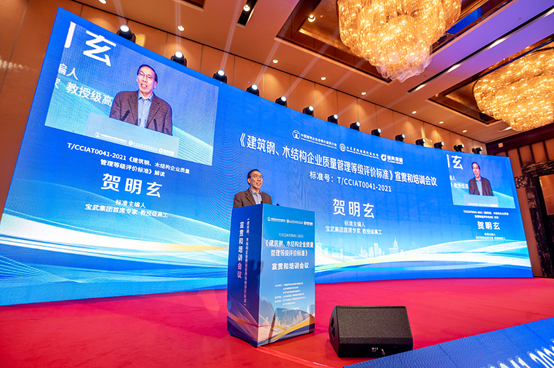 寶武集團首席專家、教授級高工賀明玄作為第一主編,從推進鋼結構產業高質量發展的角度,解讀了《建筑鋼、木結構企業質量管理等級評價標準》。